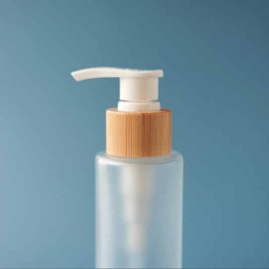 Glass Bottle Cylinder Bamboo Frosted Pump
